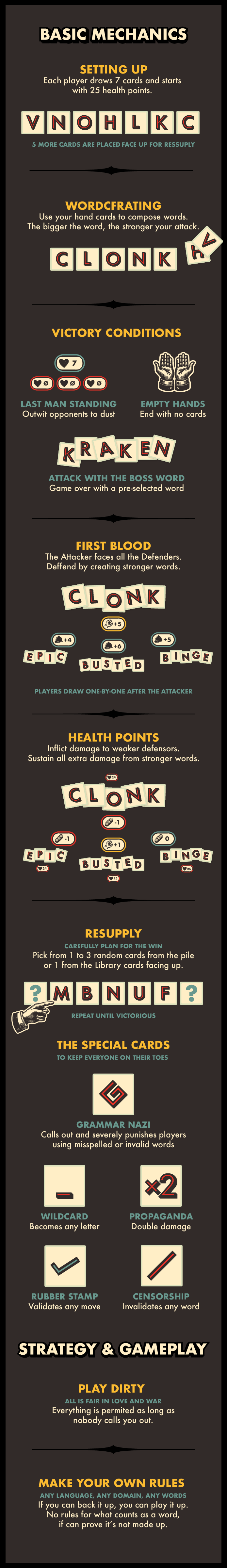 The special cards went through a few iterations. Early versions had too many; the game became about the cards rather than the words. Too few and they felt irrelevant. Five felt right: each one distinct, each one memorable, each one creating a story when played.